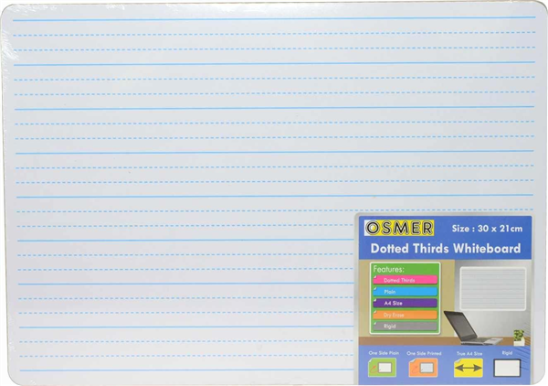 OSMER STUDENT WHITEBOARD A4 PLAIN & 24mm DOTTED THIRDS
