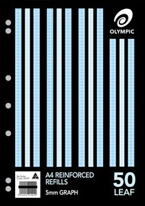 WRITER A4 50 LEAF 5MM GRAPH REINFORCED REFILLS
