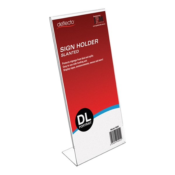 DEFLECTO SIGN HOLDER SLANTED PORTRAIT DL CLEAR