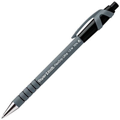 PaperMate FlexGrip Ultra Retractable Ballpoint Pens have a unique lubriglide system that results in consistent, smooth and clean lines | Made from 70% recycled materials and has 5 gripping rings to enhance your comfort | Perfect for anyone who likes an smooth gliding pen | 5 ring barrel will enhance writer comfort