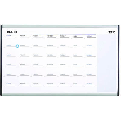 Plan your monthly itinerary more efficiently with this durable magnetic whiteboard calendar | Post photos and notations to the board with any magnet and jot down notes quickly with dry-erase marker | Durable monthly calendar doubles as bulletin board | Delivers quality planning and organizing performance in personal workstations | Extend surface life with Quartet cleaning solutions | Flexible mounting system secures to cubicles or dry-wall | Adjustable clips ensure straight and level installation | Lightweight Arc frame complements most decor | Due to freight costs, some orders may incur a delivery charge and this will vary depending on the order, particularly in regional areas. Delivery costs can be confirmed at the time of order. Some items require assembly, if you need help this can be advised at the time of order. A service fee for assembly/installation may also apply. Delivery lead times may apply to some items, this can be confirmed at the time of order