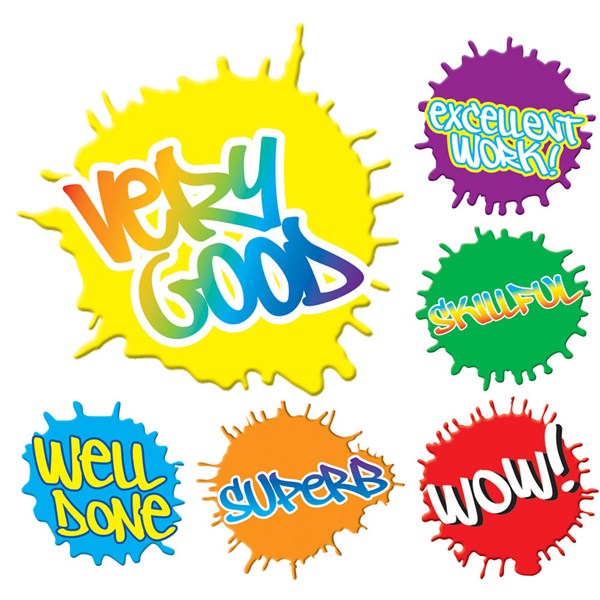 Looking to reward kids at home or in the classroom? A fantastic range of bright, fun merit stickers for teachers and parents to reward good behaviour at home or in the classroom | Fun words on paint splat designs kids will feel proud to receive | Packs of 96 colourful glossy stickers in six design options | Bright rewards for bright little minds! | Pack of 6 mixed designs | Perfect for teachers rewarding school children | Great for parents rewarding good behaviour at home | Bright, colourful designs that kids will aspire to collect