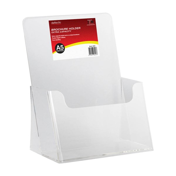DEFLECTO BROCHURE HOLDER EXTRA CAPACITY FREE-STANDING A5 CLEAR