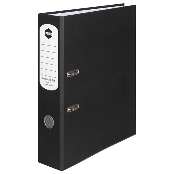 The marbig lever arch file is tough, durable and is a staple in office filing | 75mm capacity with locking mechanism to keep pages secure | Holds up to 375 sheets of paper | Rado fitting allows easy closure so you can fit more on your shlef | Spine label for easy identification