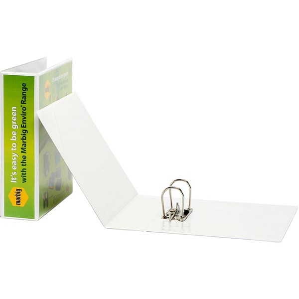 The marbig clearview lever arch file is constructed from 100% recycled board and recycled polypropylene | Ideal for all filing and allows for an insert cover to customise your filing | 75mm capacity with locking mechanism to keep pages secure | Holds up to 375 sheets of paper | Rado fitting allows easy closure so you can fit more on your shelf | Includes a locking lever arch mechanism to keep pages secure