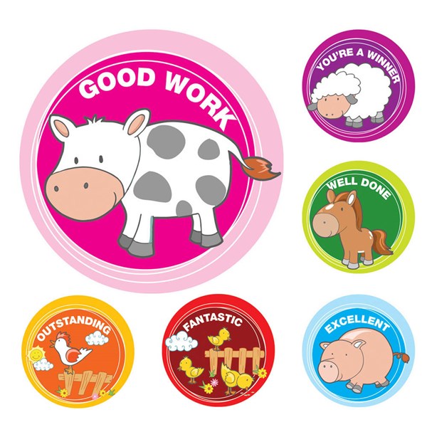 Looking to reward kids at home or in the classroom? A fantastic range of bright, fun merit stickers for teachers and parents to reward good behaviour at home or in the classroom | Fun farm animal designs kids will feel proud to receive | Packs of 96 colourful glossy stickers in six design options | Bright rewards for bright little minds! | Pack of 6 mixed designs | Perfect for teachers rewarding school children | Great for parents rewarding good behaviour at home | Bright, colourful designs that kids will aspire to collect