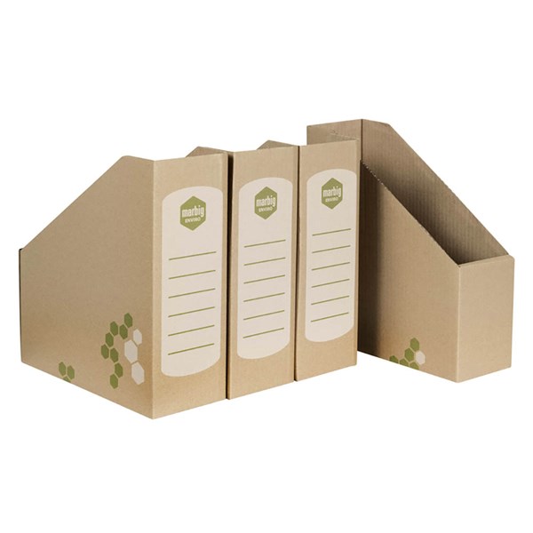 Marbig Magazine Holder | For storing magazines, periodicals, catalogues etc. | Large identification panel on front makes finding your files easy | Economical and durable way to organise your documents | Made of cardboard material with a smooth gloss finish | Supplied flat | Pack of 4