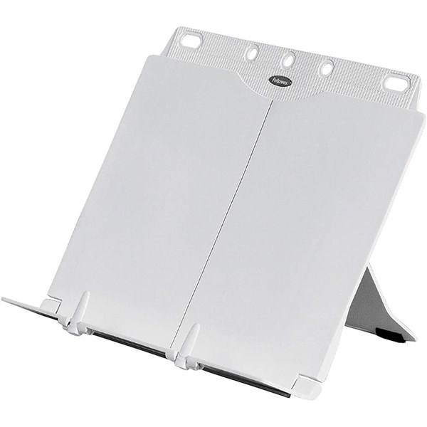 Fellowes Copyholder Booklift | Specifically designed for planners, large manuals or reference material | Two adjustable clips hold pages open at the desired location | Nine height adjustments accommodate virtually any book size and viewing angle | Easel-style holder with non-skid base folds flat for easy storage | Holds standard A4-size ring binders | Holds up to 4.5kgs