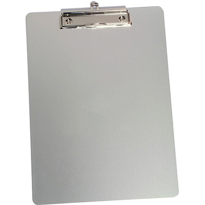 Marbig clipboard made from thick compressed aluminum | Heavy duty Aluminum clipboard | Chrome plated lever clip snaps into place securing your paperwork | Provides a smooth writing surface | Includes retractable hanging hook | Modern look