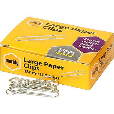 MARBIG PAPER CLIP LARGE 33MM BOX 100