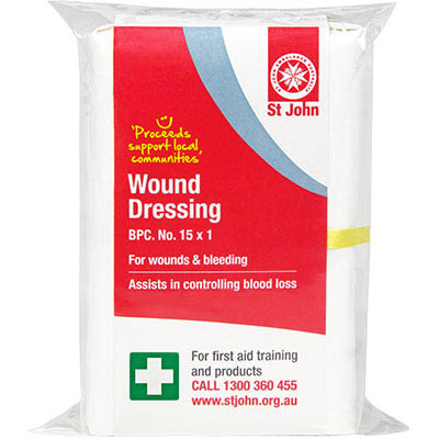 A light weight cotton absorbent pad with a gauze bandage to secure the dressing | Suitable to control medium and heavy bleeding | Made from durable light weight cotton | For wounds and bleeding