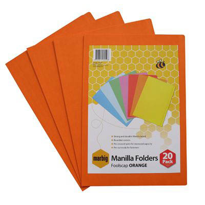 There is a better way than to walk into a meeting with a bunch of loose paper under your arm | A Marbig Manilla folder is a simple filing solution to help you get organised. Mix and match with different colours so filing is no longer boring | Durable and strong folders made from quality Manilla board | Ideal for projects or personal files and suitable for archiving | Pack of 20