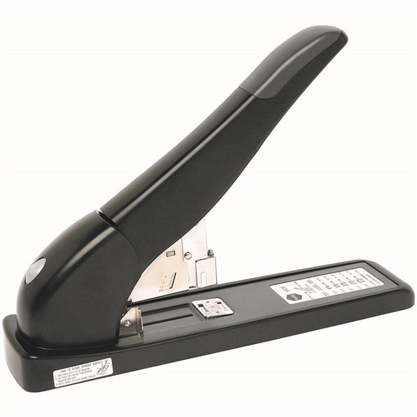 The ultimate stapler for bulky documents | Designed to cope with thick piles of paper with ease, stapling large quantities of paper, reports and other bulky documents | Staples up to 210 sheets of paper (80gsm) | Extra Heavy Duty for the toughest jobs | Built for durability with all-steel working components | Comfortable, contoured handle for extra leverage for easier stapling | Easy push button, front loading action | Large rubber feet for stability and desk protection | Use with 23/10-24 staples | Movable throat guide adjusts throat depth to 66mm
