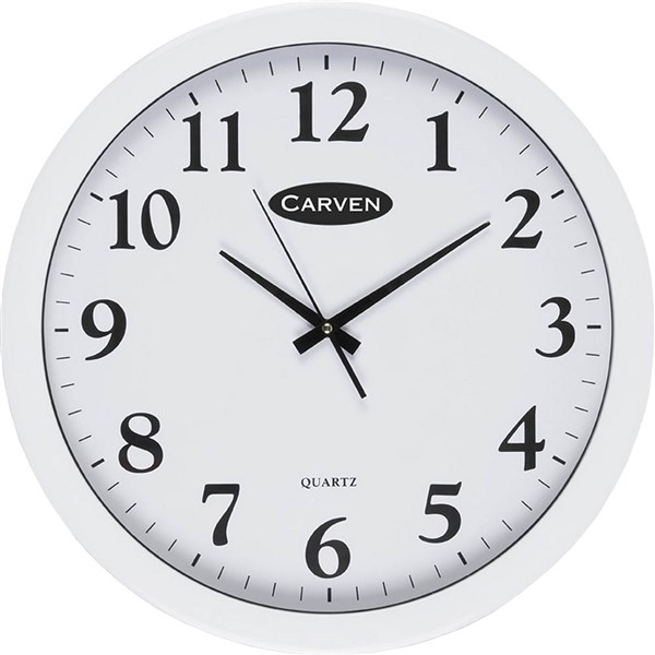 Carven wall clock with a large clock face and clear numbers make it easy to see from a distance | Ideal for use in gymnasiums and halls | Powered by a single AA battery (not included)
