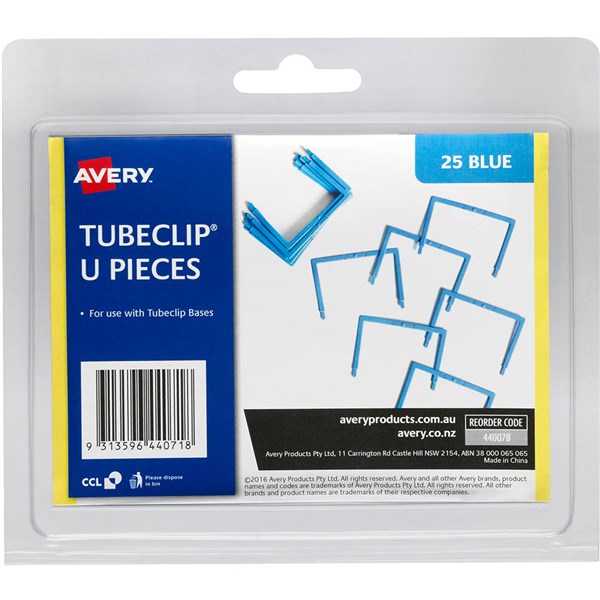 AVERY 44007B TUBECLIP U PIECE BLUE PACK 25