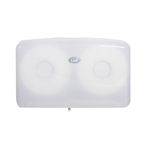 The Livi Double JRT Dispenser allows for optimal capacity with one jumbo toilet roll on each side | This reduces the frequency of changing toilet paper and allows for longer lasting use in public and office environments | | Refills Available | 7035792 - LIVI ESSENTIALS JUMBO ROLL TOILET 1 PLY 600M CARTON 8 | 7002589 - LIVI ESSENTIALS JUMBO ROLL TOILET EMBOSSED 2 PLY 300M CARTON 8 | Lockable
