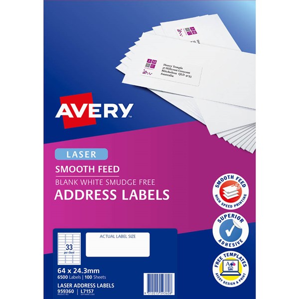 AVERY ADDRESS LABEL SMOOTH FEED LASER 33UP WHITE