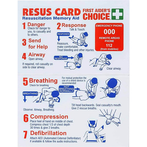 FIRST AIDERS CHOICE CPR RESUSCITATION POCKET CARD