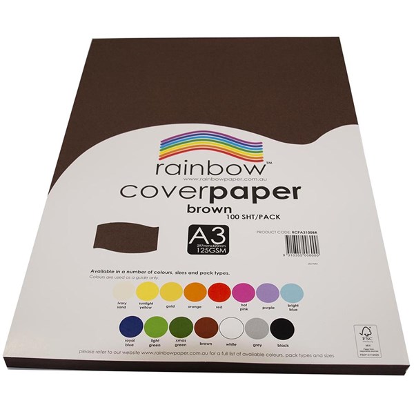 RAINBOW COVER PAPER 125GSM A3 BROWN PACK 100