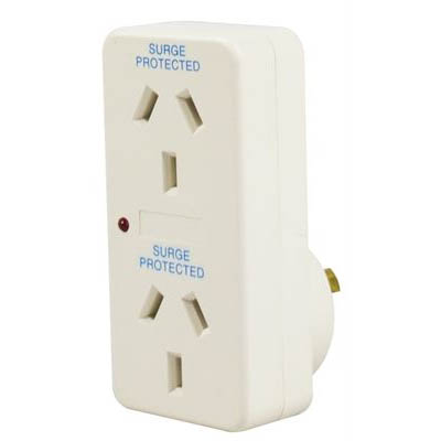 Italplast power adaptor | Double a standard single wall socket into a dual socket | Equipped with a surge protector to increase safety and longevity of electrical appliances | An LED light indicates that power is on and surge protection is active