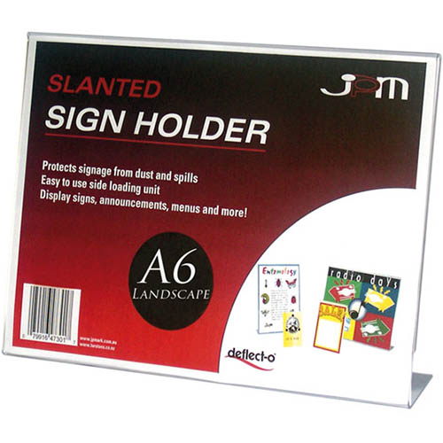 DEFLECTO SIGN HOLDER SLANTED LANDSCAPE A6 CLEAR