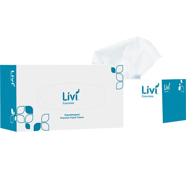 The Livi Essentials 2ply facial tissue delivers a premium soft touch | The facial tissues are made from virgin pulp and are hypoallergenic for sensitive skin | Each box contains 200 Sheets per pack