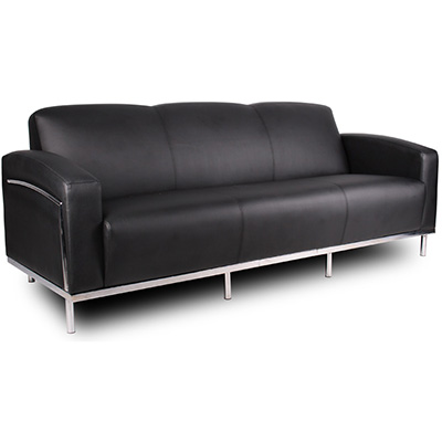 Make a lasting first impression with our stylish range of reception seating | The range of Sienna reception seating offers a cost effective solution to your reception requirements | All our reception seating is backed by a one year warranty | Three seater lounge with soft curve polyurethane black upholstery and chrome frame | Black PU Upholstery | Steel Chrome External Frame | 1 year warranty | Due to freight costs, some orders may incur a delivery charge and this will vary depending on the order, particularly in regional areas. Delivery costs can be confirmed at the time of order. Some items require assembly, if you need help this can be advised at the time of order. A service fee for assembly/installation may also apply. Delivery lead times may apply to some items, this can be confirmed at the time of order
