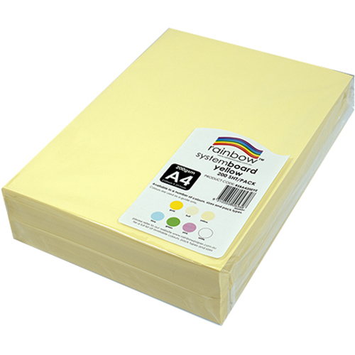 RAINBOW SYSTEM BOARD 200GSM A4 YELLOW PACK 200