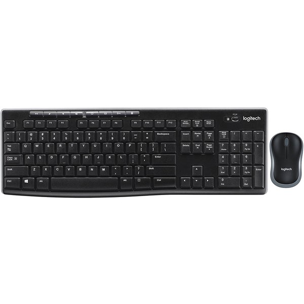 Logitech MK270 Wireless full sized keyboard and mouse combo | The Logitech MK270 Wireless Combo brings together the convenience and comfort of a full-sized keyboard with a sculpted, compact mouse. With media keys, a number pad and precise cursor control to make your work a whole lot smoother. Plus, the lag-free wireless makes setup easy and saves space on your desk | Comfortable, full-sized, and efficient. Complete with easy access to media controls, this keyboard lets you get more done in less time with eight media controls that let you instantly access to music, media, volume, and more | Stay productive longer with the comfortable, contoured shape that follows the natural curve of your hand. This compact and wireless mouse is designed to be equally comfortable for both left- and right-handed users. Plus, it's smooth cursor control allows you easy navigation on most surfaces | Forget about drop-outs and lag thanks to a strong, reliable 2.4GHz wireless connection with a 10 meters range (Wireless range may vary due to environmental and computing conditions) | Free up your desk with a USB receiver - so tiny, it can stay in your computer | Enjoy the familiar typing of MK270, the world's best-selling combo, built with the same high quality and reliability standards that have made Logitech the global leader for mice and keyboards | The keyboard comes with a spill-resistant design (Tested under limited conditions, Maximum of 60ml liquid spillage - do not immerse the keyboard in liquid) durable keys, and sturdy tilt legs with adjustable height | A 36-month keyboard and 12-month mouse battery life (Keyboard and mouse battery life may vary based on user and computing conditions) along with on/off switches - means you can go for months without the hassle of changing batteries | Full-size keyboard | Comfortable compact mouse | Simply wireless | Reliable and durable | Built to keep going | NANO RECEIVER | SYSTEM REQUIREMENTS | TECHNICAL SPECIFICATIONS | Spill-resistant design Tested under limited conditions (maximum of 60 ml liquid spillage). Do not immerse the keyboard in liquid | Adjustable keyboard height | 10-Key Number pad | Caps lock indicator light | On/Off power switch | 2 x AAA Alkaline batteries | 1 x AA Alkaline battery | PACKAGE CONTENTS | Nano-receiver | 2 x AAA (keyboard) and 1 x AA (mouse) batteries | User documentation | GENERAL | Warranty Information | 3-year Limited hardware warranty