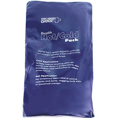 First aiders choice Hot and Cold Packs can be used both as an ice pack and a heat pack | The soft pack easily to contours to most parts of the body providing a therapeutic relief | Contains 1 x reusable hot and cold packs and towelling sleeve | Hot Compress - You can heat it up in hot water or the microwave for your convenience. Suitable for muscular aches, menstrual pain, body stiffness, rheumatism and strains | Cold Compress - Simply put it in the freezer for at least 1 hour and it's ready to use. Suitable for headaches, migraines, bruising, swelling, sprains and toothaches | Reusable and Microwavable | Cold Compress and Hot Compress | Comes with Towelling Sleeve | | GENERAL INFORMATION INTENDED PURPOSE | Cold - to help reduce swelling after injury, cool down temperature, ease headaches or relieve minor burns. Hot - Temporary pain relief of aching muscles and joints, back pain or menstrual pain
