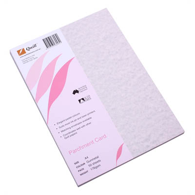 Quill Parchment Paper & Board is a versatile material for a variety of activities | The boards have a thick 176gsm weight, great for cards or certificates, and are acid free which ensures that they are long lasting | Parchment card is ideal for certificates, invitations, menus | Paper & Board can be used in all copiers, inkjet and laser printers | The paper and board can be matched to the corresponding envelopes for a coordinated theme | Co-ordinates well with other Quill papers | Pack of 50