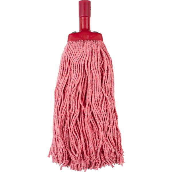 Cleanlink mop heads are manufactured with a carefully selected synthetic blend of fibres | Ideal for commercial use and colour coded to meet industry standards | Each mop head has a 25mm thread ready for aluminium handle attachment, and an adaptor if a timber handle is preferred | Fibres are stitched prior to clamping to ensure strength and integrity | Blended fibres for maximum absorption | Additional 25mm thread attachment included | Colour coded RED for bathroom cleaning