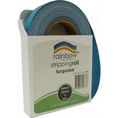 RAINBOW STRIPPING ROLL RIBBED 25MM X 30M TURQUOISE