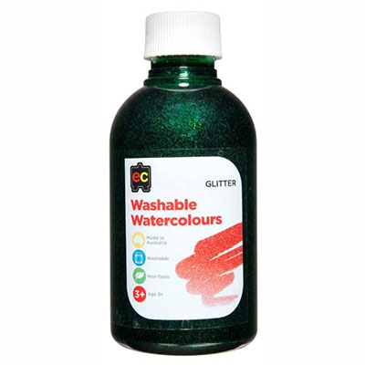 EDUCATIONAL COLOURS WASHABLE WATERCOLOUR GLITTER PAINT 250ML GREEN