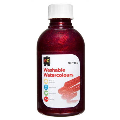 EDUCATIONAL COLOURS WASHABLE WATERCOLOUR GLITTER PAINT 250ML RED