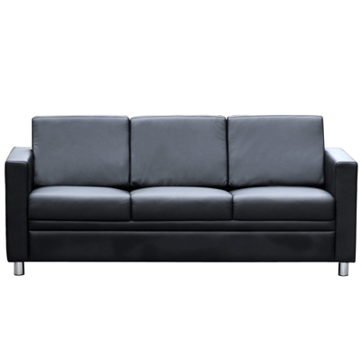 Stylish classic corporate leather lounge with chrome feet | Professional single, double or three seater, modern square finished leather wrapped lounge | Upholstered in genuine leather, the Marcus range is a comfortable modern lounge | Designer stylish breakout furniture | Strong legs with protection caps on the frames to eliminate marking the floor | Fully upholstered black leather lounge | Quality foam for great comfort and support | Due to freight costs, some orders may incur a delivery charge and this will vary depending on the order, particularly in regional areas. Delivery costs can be confirmed at the time of order. Some items require assembly, if you need help this can be advised at the time of order. A service fee for assembly/installation may also apply. Delivery lead times may apply to some items, this can be confirmed at the time of order