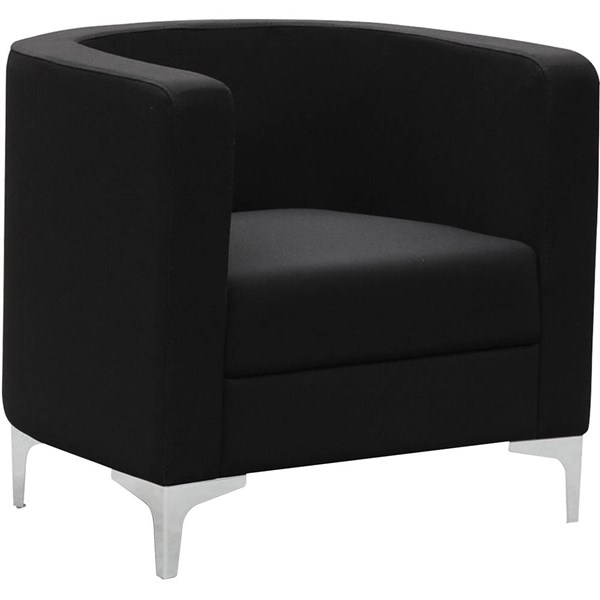 Modern style single seater sofa chair in quality fabric with chrome legs | Designer stylish breakout furniture | Ideal for reception or internal meeting areas | Comfortable Fabric Upholstery | Quality foam for great comfort and support | Generous Size Seat | Due to freight costs, some orders may incur a delivery charge and this will vary depending on the order, particularly in regional areas. Delivery costs can be confirmed at the time of order. Some items require assembly, if you need help this can be advised at the time of order. A service fee for assembly/installation may also apply. Delivery lead times may apply to some items, this can be confirmed at the time of order
