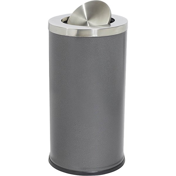 Compass Hammertone bins are a sturdy and durable choice for discreet waste disposal in public areas | Steel body with hammertone grey powder coated finish | 201 grade stainless steel swing lid | Swing top mechanism can be easily unbolted enabling the bin to be used as an open top rubbish bin | Galvanised liner | Rubber base