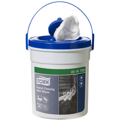 No water? No worries - with Tork Hand Cleaning and Surface Cleaning Wet Wipes you can clean dirty hands and surfaces quickly and easily, wherever you are | Pre-moistened, thick and durable disposable wipes in a convenient, portable bucket for hand cleaning | Clean hands quickly with thick, durable, wipes that remove grease and dirt with ease | Dermatologically tested micro emulsion formula is gentle on hands but tough on dirt | | Removes dirt and grease and cleans with ease when running water is not available | Convenient portable buckets | Thick and durable wipes | Clean hands quickly while on the go