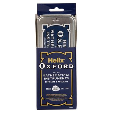The Helix Oxford Blue 9 Piece Maths Set is a convenient way of stocking up on your maths essentials | Comes with an assortment of maths tools to complete your work plus some stationery essentials and a durable tin to store it all together | Drawing instrument and tool set for the older students and professionals | Packaged in a sturdy presentation tin box