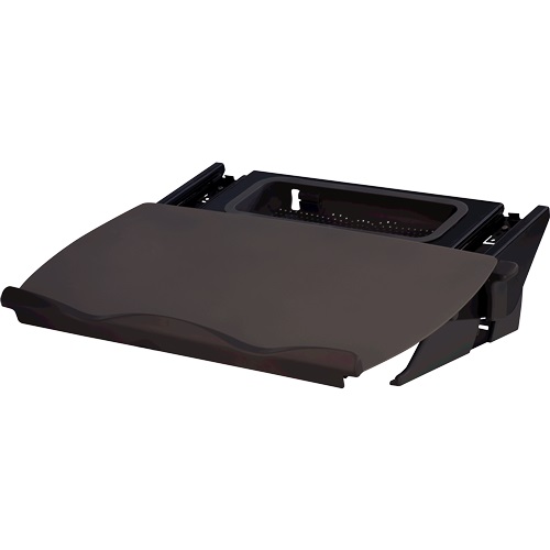 Fellowes Easy Glide Writing/Document Slope | To be positioned in between the monitor or laptop and the keyboard | Main platform glides freely forward to cover the keyboard creating an ergonomic writing area | Contoured ledge supports catalogues, books and paperwork up to 5kg without causing discomfort | Easily angle adjustable from 7.5 to 37.5 degrees to enable ease of document viewing | Removable accessory tray with charging cable manager space