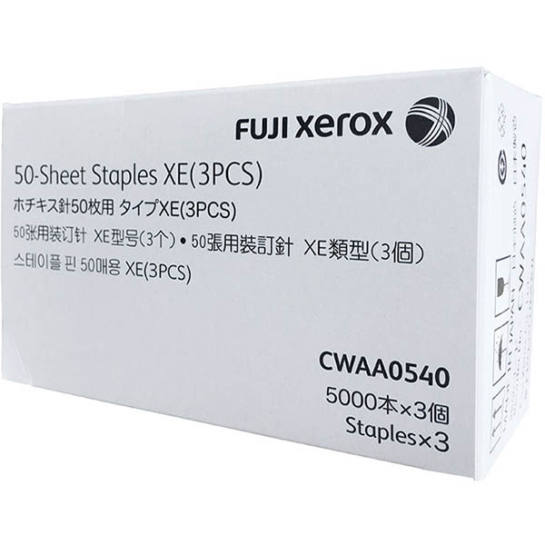 The Fuji Xerox CWAA0540 printer staple cartridge is user replaceable | Your Fuji Xerox printer will alert you when the staple cartridge needs to be changed | | Compatible with the following: FUJI XEROX DOCUPRINT C5005D, FUJI XEROX DOCUPRINT CM505DA MFD | 5000 x 3 | XCWAA0540