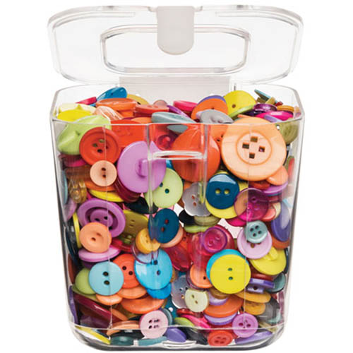 Great for on-the go storage of buttons, stamps, ribbon, stickers, paint, and more | Multiple units can be stacked and locked using the lift and lock feature | Removable storage containers feature hinged, snap-tight lids | Modern look is appealing and trendy for your storage space | Lids can be removed for easier-access to supplies | Compatible with the Deflecto Caddy Organiser (7054796 sold separately) | Individual containers can hang on wall with Deflecto Mounting Bar (7054803 sold separately) | BPA free plastic construction | Please note: Image representation only. Contents not included