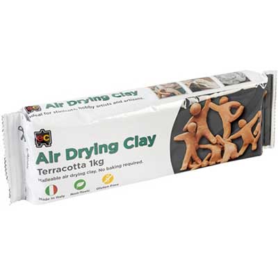Educational Colours Air Drying Clay is ready to use | This modelling material can be used to create various objects such as jewellery, ornaments and figurines | No baking is required, object will set hard when left to dry in open air | Drying time varies according to thickness and climatic conditions | The use of wet hands or wet brush whilst shaping will assist in creating smooth texture | Objects can be painted and varnished once dry | Ensure unused Educational Colours Air Drying Clay is resealed airtight in the package to retain malleable consistency | Ready to use | Made in Italy | Non-Toxic | Gluten Free
