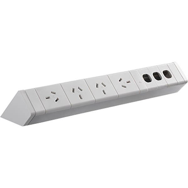 Rapidline Power Rail | Power rails clamp to the desk to provide above desk access to power and data | Clamps on to Desk | Links to Cable Basket, Adjoining Power Rail, Wall Starter or Power Pole Kit | When Used Against Privacy Screens, Scallop Required in Worktop | Backed by a 2 year warranty | Due to freight costs, some orders may incur a delivery charge and this will vary depending on the order, particularly in regional areas. Delivery costs can be confirmed at the time of order. Some items require assembly, if you need help this can be advised at the time of order. A service fee for assembly/installation may also apply. Delivery lead times may apply to some items, this can be confirmed at the time of order