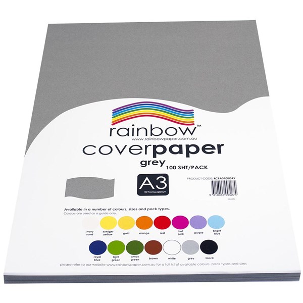 RAINBOW COVER PAPER 125GSM A3 GREY PACK 100