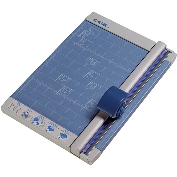 Carl RT200 rotary trimmer | This versatile trimmer has applications in both the commercial and craft markets | Safe and precise cutting made easy | Lightweight with strong metal base | Metric graduations and paper size markings | The blade cuts with a rotary action