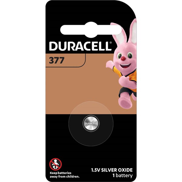 Duracell Specialty 377 Button Silver Oxide batteries are made for reliable, long-lasting power for your specialty devices | They have up to 3 years of in-storage guarantee so you can be confident these Silver Oxide Button batteries will be ready when you need them | They are suitable for use in watch, calculators, medical devices (insulin pumps, digital thermometers)
