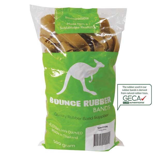 Bounce Rubber Bands high quality ecofriendly rubber bands | Rubber band are often used to bundle items together across many industries, in fact you may just be surprised at just how many industries actually use rubber bands | The humble rubber band is often an overlooked product that makes many peoples lives easier on a daily basis | You can keep your office organised with Bounce Rubber Bands | | GECA Claim Authenticated: The rubber used in Bounce Rubber bands is derived from natural rubber trees