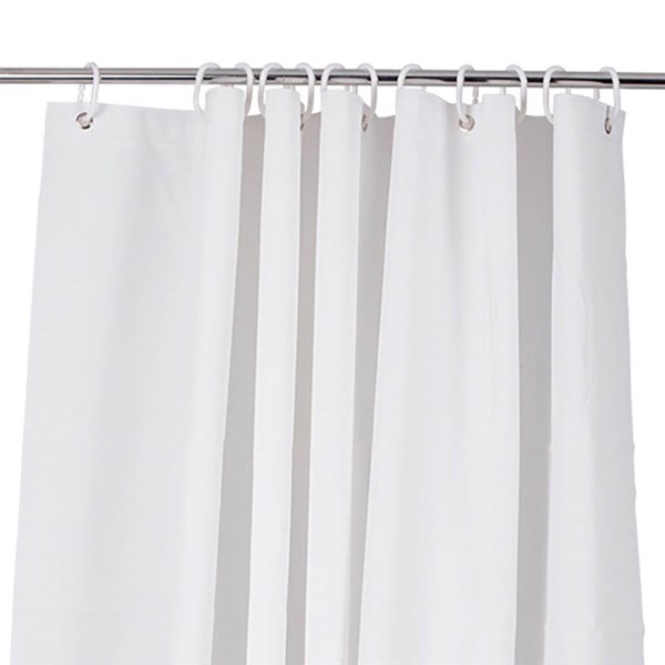 PEVA non-chlorinated vinyl material - safer and healthier than plain vinyl | 12 plastic rings for 12 eyelets | Plain finish (no pattern on material) | Water resistant and water repellent | Lighter weight weighted base | Machine washable - wash with cold/warm on gentle wash | Please note - Pole not included